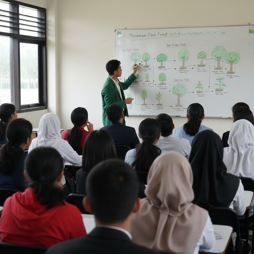 Ketahanan pangan di masa depan tidak lagi ditentukan oleh luasnya lahan persawahan di pedesaan, melainkan oleh kreativitas masyarakat dalam memanfaatkan setiap jengkal tanah di lingkungan mereka sendiri. Fenomena ini semakin menguat seiring dengan munculnya konsep hutan pangan perkotaan atau yang lebih dikenal dengan istilah Food Forest. Sebuah inisiatif menarik datang dari Universitas Kebun Anom, sebuah komunitas kolektif yang berfokus pada regenerasi ekosistem mikro di pemukiman padat. Mereka membuktikan bahwa keterbatasan lahan bukan merupakan penghalang untuk menciptakan ekosistem mandiri yang mampu menghasilkan sumber pangan bergizi sekaligus mendinginkan suhu udara di tengah padatnya bangunan permanen.