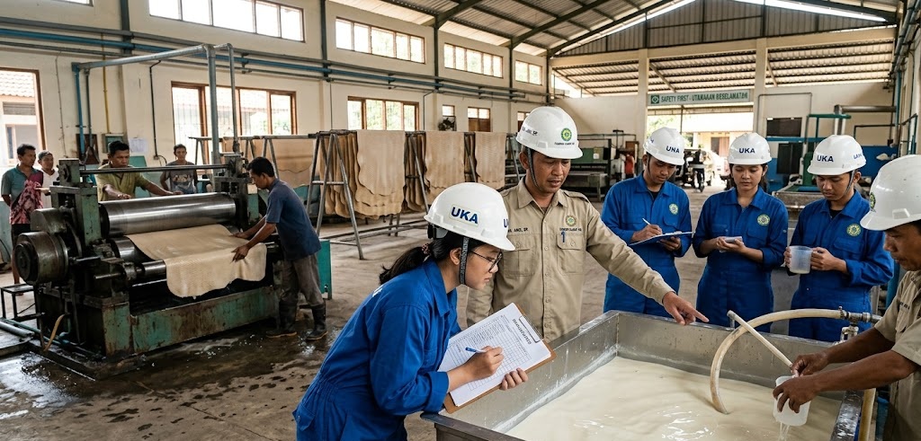 Di Universitas Kebun Anom, proses penggumpalan lateks menjadi salah satu fokus utama dalam pembelajaran praktik mahasiswa. Kegiatan ini memberikan pengalaman langsung kepada mahasiswa tentang bagaimana bahan baku alami diolah secara sistematis hingga memenuhi standar mutu ekspor.